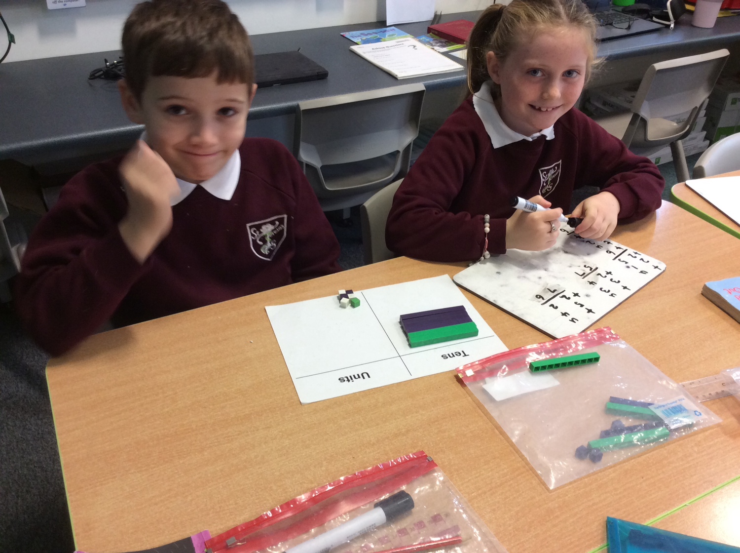 We used dienes today in Primary 4 to help us add our tens and units vertically.
